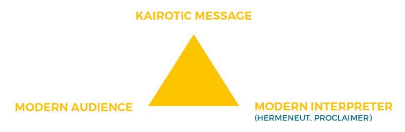 Because there is a fluidity of meaning between the historical meaning and the contemporary meaning of the sacred text, the third plane of meaning is needed to strike a homerun and achieve a complete interpretation of the Bible. The third plane involves interaction among the modern interpreter’s understanding of the first two triangles and her modern audience: