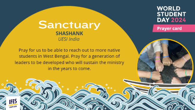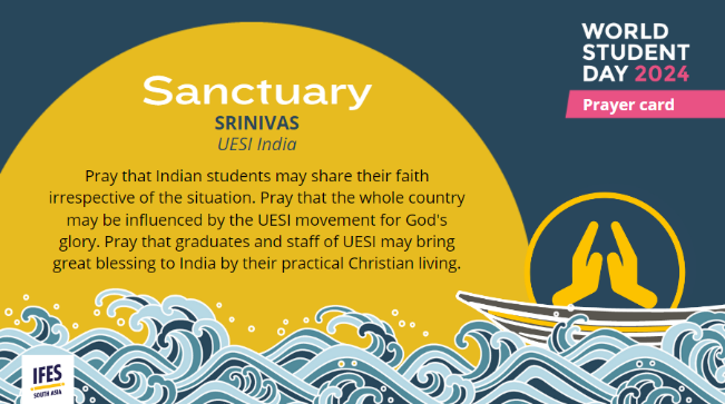 In anticipation of Sanctuary: World Student Day on Friday 18 October, this week’s Prayerline explores the context and backstory behind two Prayer Cards. We spotlight requests from Shashank and Srinivas, part of UESI India, an IFES movement that recently celebrated its 70th anniversary.