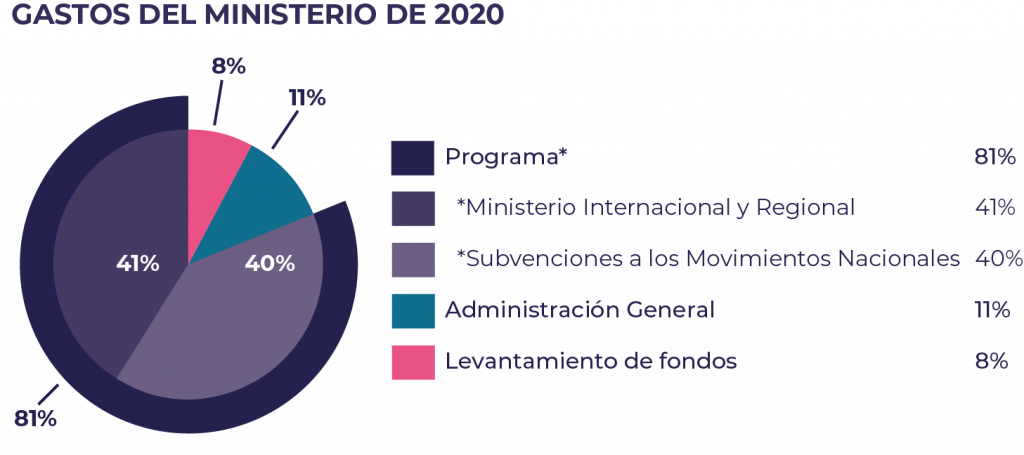 Más del 80% de cada donativo va dirigido a los costes de nuestros programas y ministerios. A continuación, encontrarás el desglose de estos costes.