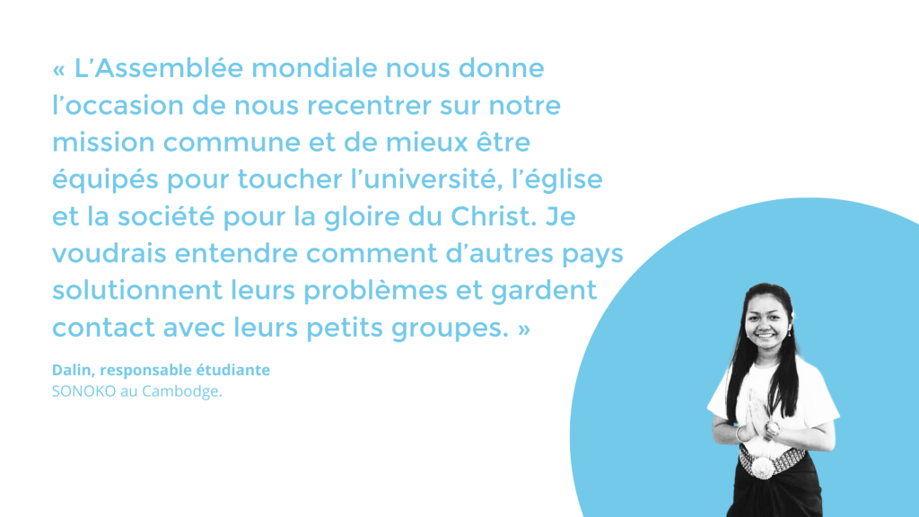 Au mois d’août, nous prévoyons de réunir 1 000 étudiants, membres du personnel, professeurs et membres du conseil d’administration en Indonésie, pour un temps de communion, d’adoration et d’apprentissage, en mettant l’accent sur la résilience dans le témoignage. L’assemblée mondiale de l’IFES 2023 est l’occasion pour nos 160 mouvements membres de partager ce qu’ils vivent et de s’outiller mutuellement pour faire face aux défis à venir.